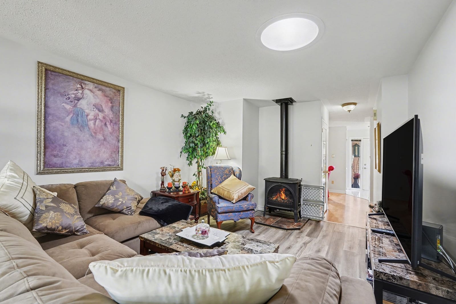Discover this fabulous condo in the unique, adult-oriented neighbourhood known as Perthshire. This spacious 1+1 bedroom, 2 bathroom bungalow is set nicely back from the road and welcomes you with its thoughtfully designed layout. The main level features a cozy living room anchored by a gas fireplace, the dining room, a cozy den, and a spacious kitchen which offers plenty of cupboards and room for creating meals. The primary bedroom with double closets, full 4pc bathroom, and convenient laundry area make it perfect for easy living and complete the main level. The lower level features an additional bedroom, family room, full bathroom and utility room with plenty of additional storage space. You will love the private screened room where you can enjoy the fresh air, bug free and the attached garage! Owners in Perthshire appreciate the stress-free living here with lawn maintenance and snow removal handled by the condo corporation. The community clubhouse also adds another social dimension to this delightful home, which also offers additional parking for guests and is within walking distance to all amenities Heritage Perth has to offer including Conlon Farm with its recreational facilities and well know Stewart Park, just minutes away. Experience the best of Perth living where small-town charm meets modern conveniences all within this beautifully maintained condo. Your new home awaits!
