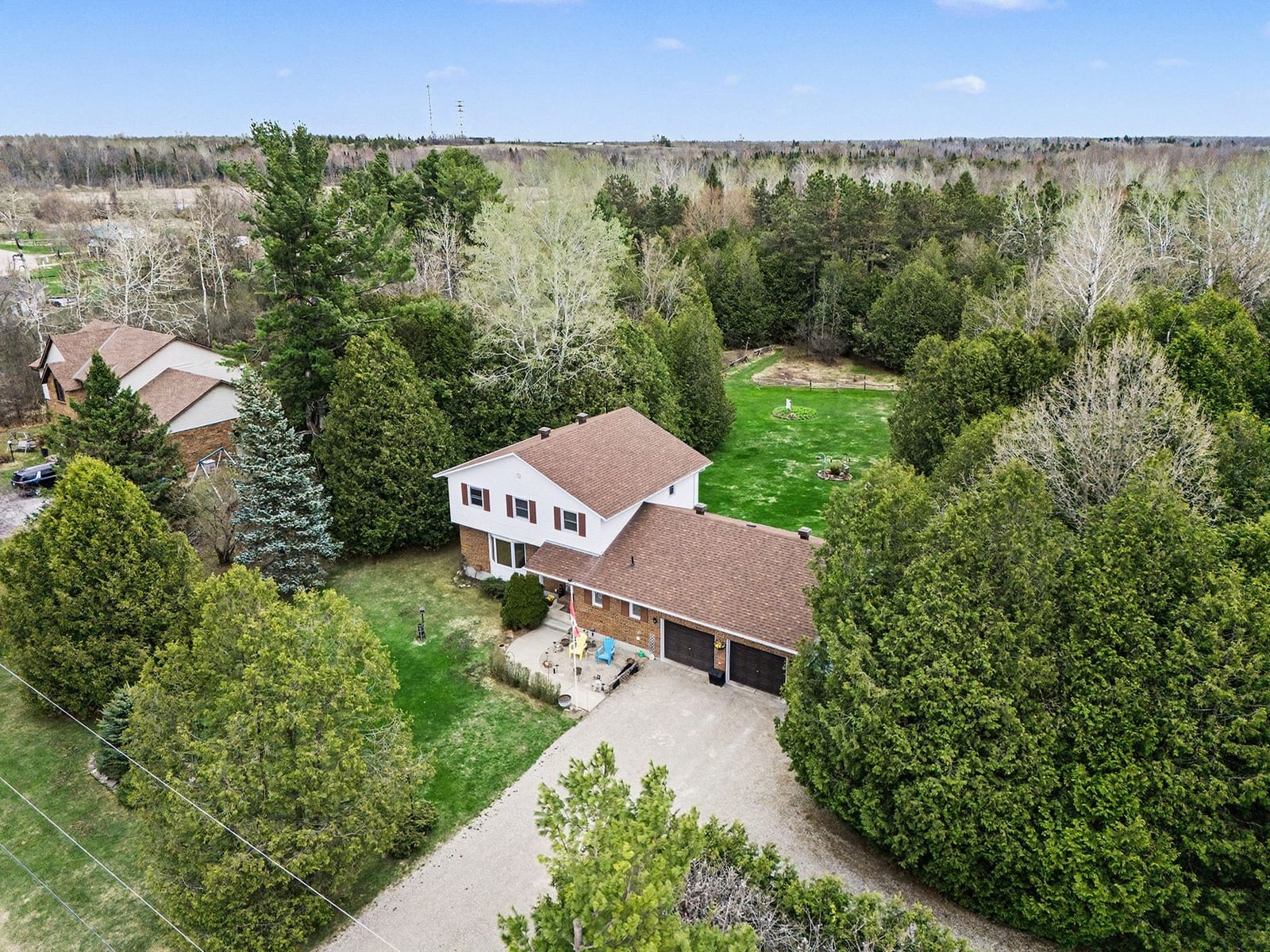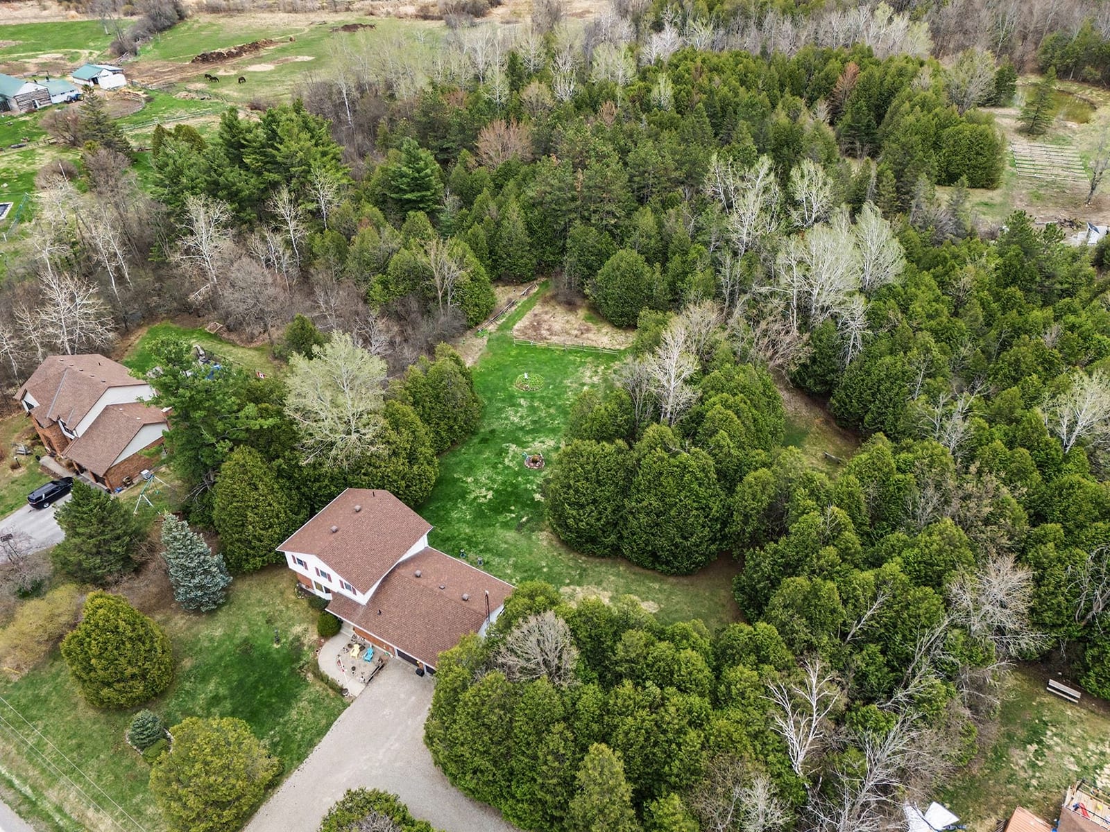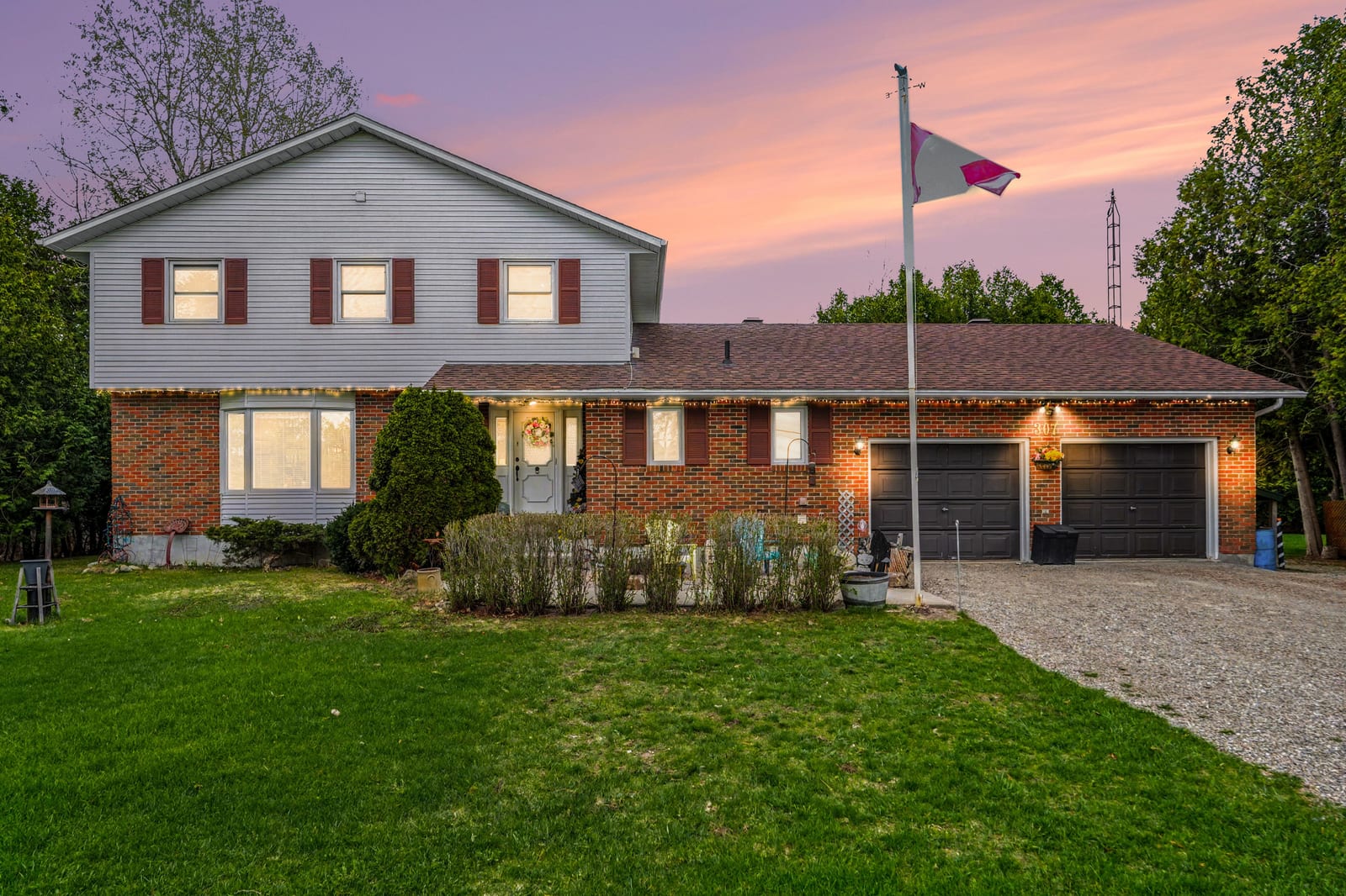 This wonderful property offers a serene and peaceful country setting. Located on over 2 acres & nestled among the tress this home provides plenty of privacy & an expansive backyard to enjoy. Gather around the firepit & make smores with the kids for dessert after dinner. Or relax in the 3 season sunroom & watch the young ones play. As you enter the home you are welcomed into the generous foyer where you can then enter the inviting living room with bay window overlooking the front yard. Adjacent to the living room is the dining room with patio doors to a deck. Next is the thoughtfully & recently renovated kitchen with island, plenty of storage & a breakfast nook with bay window. From the breakfast nook you move into the large sunken family with propane free standing stove to enjoy on cooler nights & also has access to outside. Off the family room is the 3 season sun room. The main floor is also home to the laundry/mudroom with garage access & a 2 pc bath. The spacious & conventional lay out of this home has the 4 bedrooms, including the large master suite on the second level. The other 3 bedrooms are of a generous size & share a 5 pc bath. The master has a 5 pc ensuite with jacuzzi tub & double closet. The lower level is home to an oversized recreation room, home office, utility room and cold cellar pantry as well as additional storage & workshop. Your are only a minute to the village of Numogate on Hwy 15 & access to the OVRTrail ...