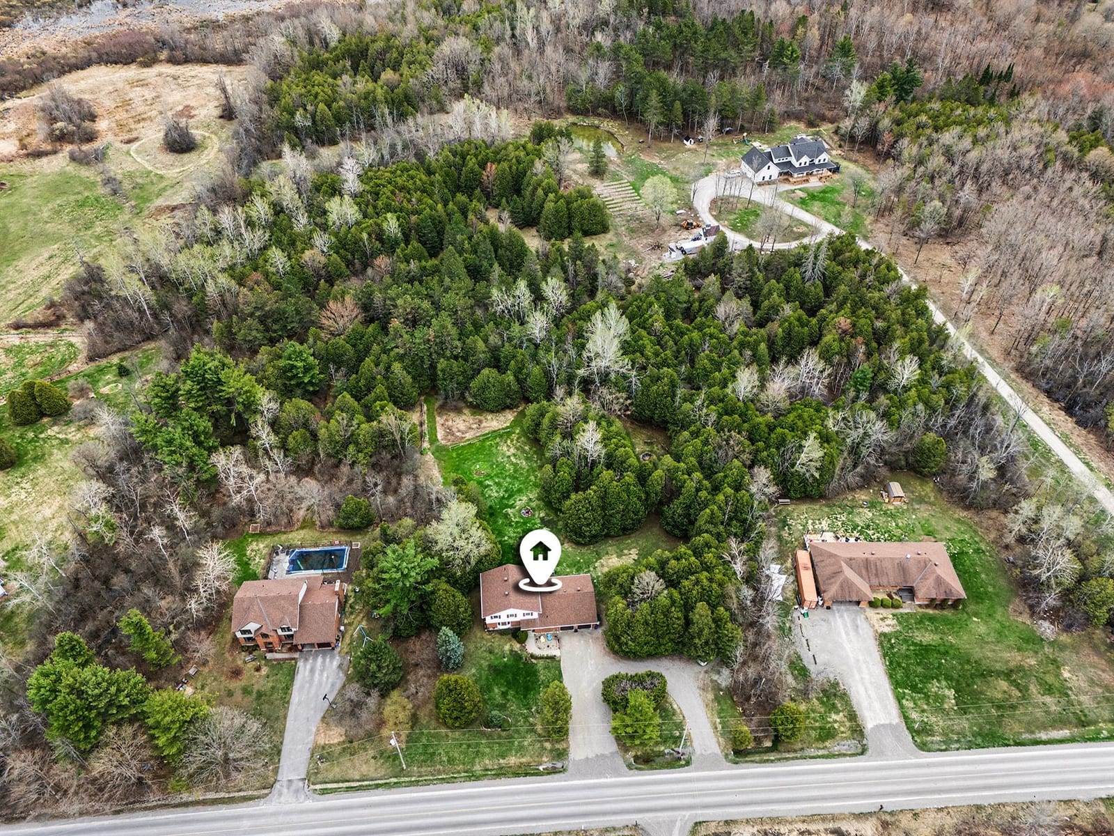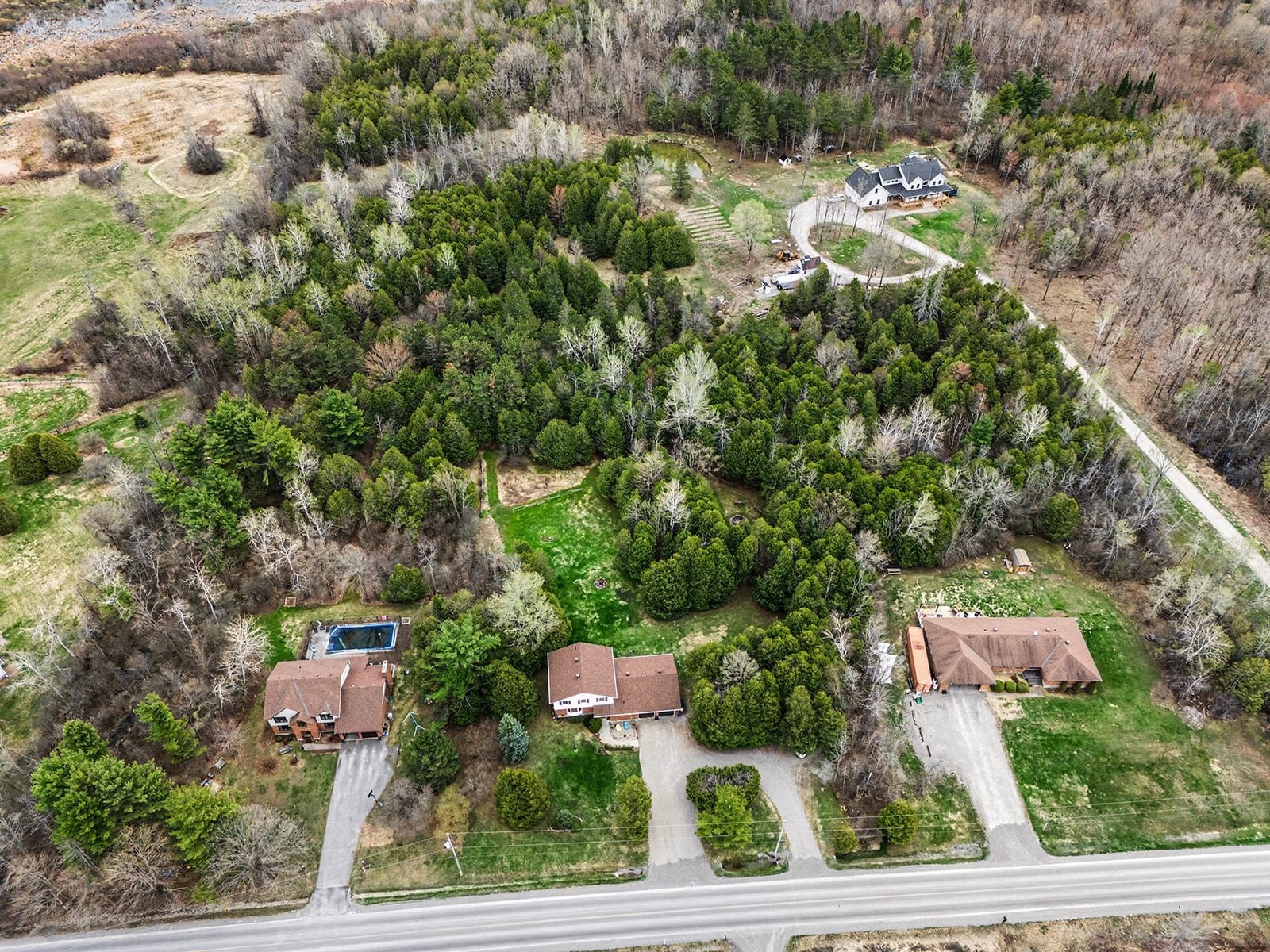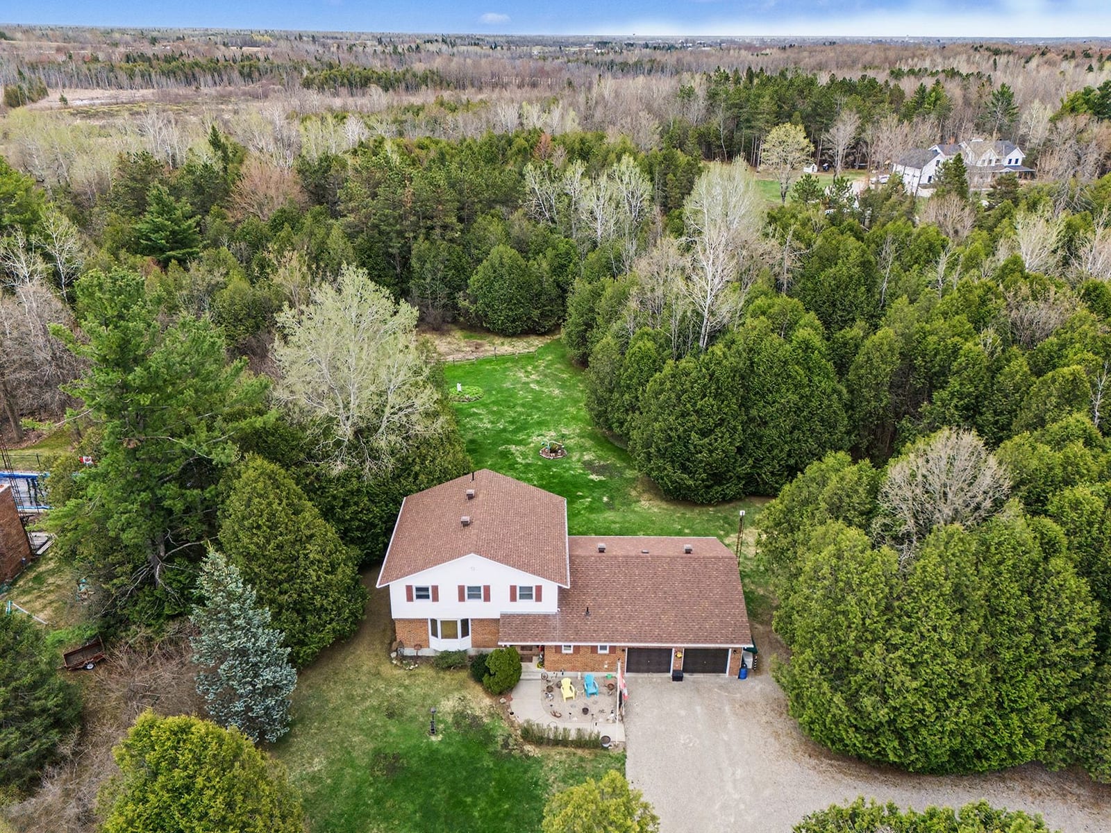 This wonderful property offers a serene and peaceful country setting. Located on over 2 acres & nestled among the tress this home provides plenty of privacy & an expansive backyard to enjoy. Gather around the firepit & make smores with the kids for dessert after dinner. Or relax in the 3 season sunroom & watch the young ones play. As you enter the home you are welcomed into the generous foyer where you can then enter the inviting living room with bay window overlooking the front yard. Adjacent to the living room is the dining room with patio doors to a deck. Next is the thoughtfully & recently renovated kitchen with island, plenty of storage & a breakfast nook with bay window. From the breakfast nook you move into the large sunken family with propane free standing stove to enjoy on cooler nights & also has access to outside. Off the family room is the 3 season sun room. The main floor is also home to the laundry/mudroom with garage access & a 2 pc bath. The spacious & conventional lay out of this home has the 4 bedrooms, including the large master suite on the second level. The other 3 bedrooms are of a generous size & share a 5 pc bath. The master has a 5 pc ensuite with jacuzzi tub & double closet. The lower level is home to an oversized recreation room, home office, utility room and cold cellar pantry as well as additional storage & workshop. Your are only a minute to the village of Numogate on Hwy 15 & access to the OVRTrail ...
