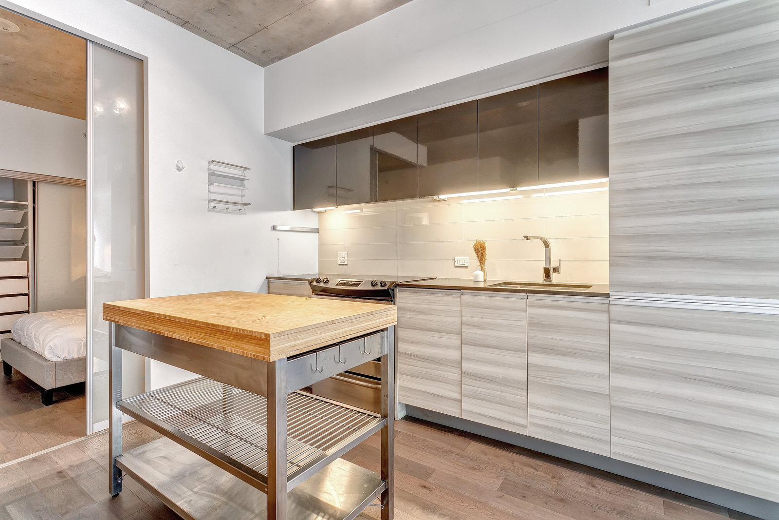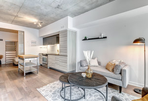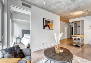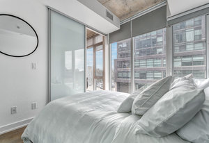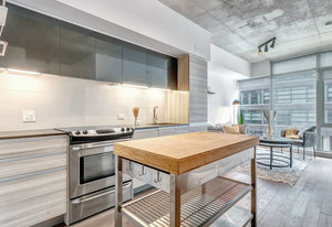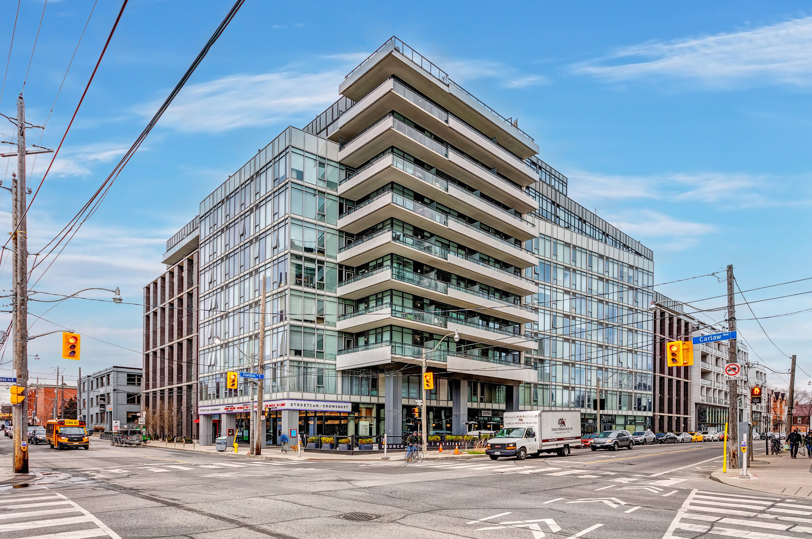Lovely, bright, sun filled 2 bedroom + den apartment in The Carlaw, a modern, classy Leslieville building at the heart of the action. Located just east of Toronto downtown core, vibrant Leslieville has a trendy culture and kid-friendly personality. The living space of this apartment is enhanced by an open concept design combined with the 9ft. headroom and huge floor-to-ceiling windows which span the entire front of this south facing home. Don't forget the convenient ensuite laundry and the owned locker. From the Carlaw you can walk to your favorite shops, cafes, restaurants and bars or jump on a bus at your doorstep. If you feel like spending some time above the crowds, just go a few floors up to the relaxing roof terrace. Shortly after you move in, you will realize that your apartment, The Carlaw and the location are amazing.