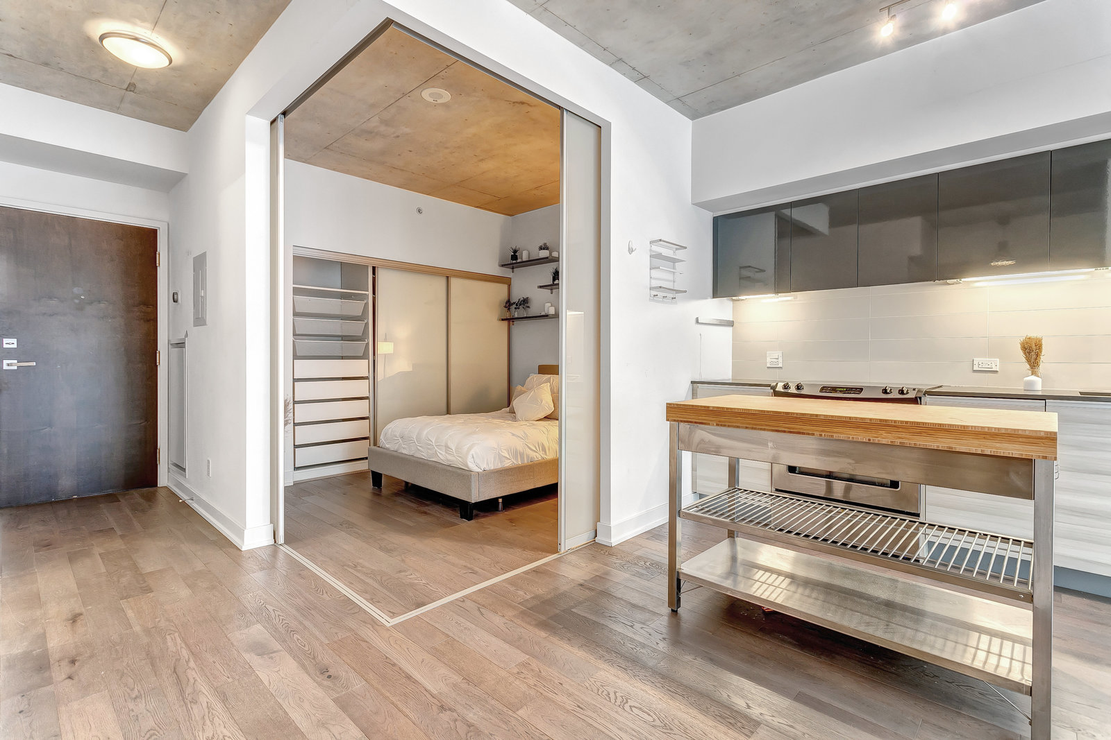 Other features include integrated kitchen appliances, stacked washer and dryer, portable centre island, custom window blinds, all shelves, google nest smart thermostat, large wall to wall closets with closet organizers, hardwood flooring and heat pump new 2017.