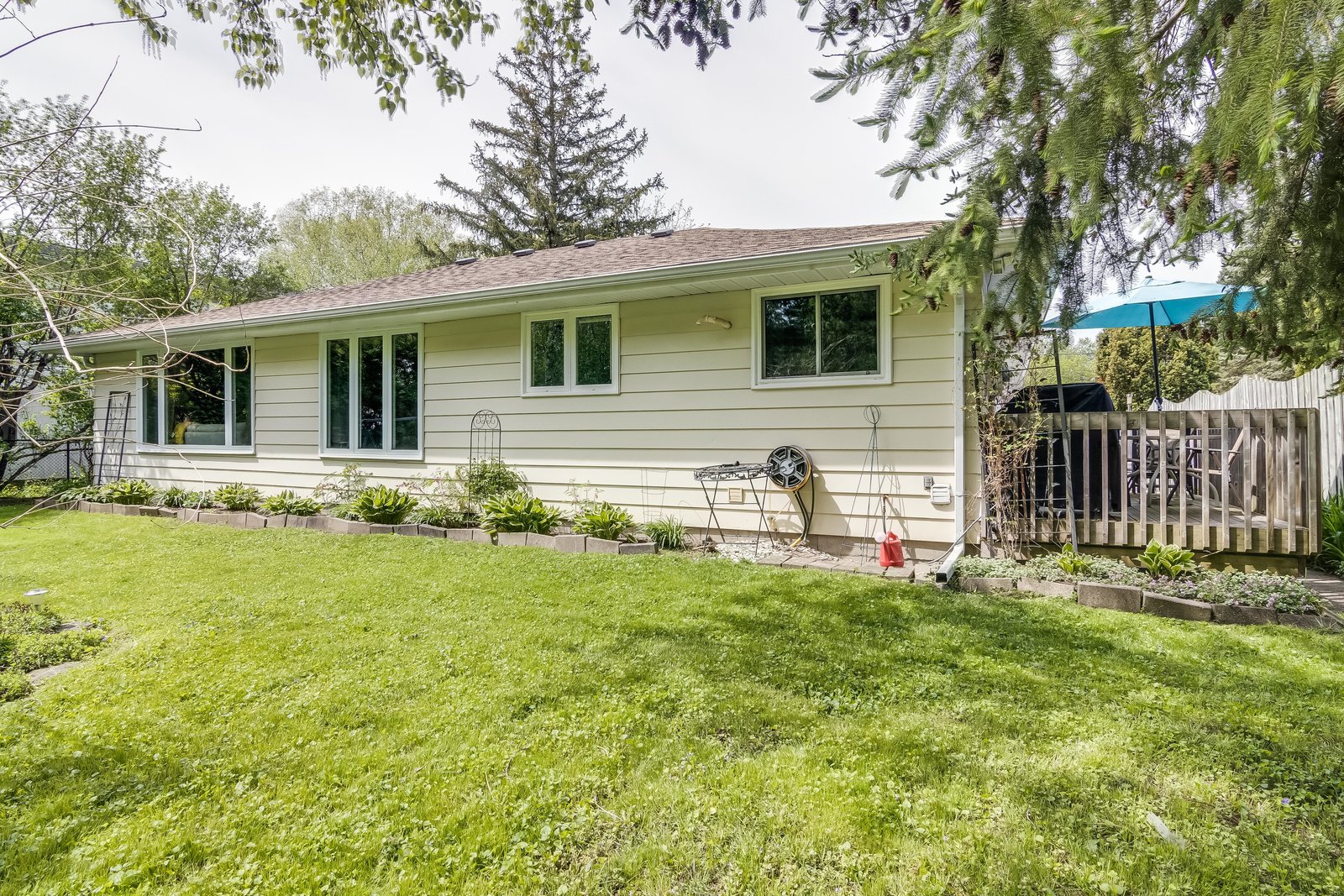 Beautifully Maintained Home Situated On A Mature & Landscaped 66 X 191 Ft Lot With No Houses Behind. This Bungalow Boasts Over 1300 Sq Ft Of Living Space, Bright & Open Concept Living/Dining Rms With Large Windows To Allow For Lots Of Natural Lighting, Newer Hardwood Flooring And Cozy Gas Fireplace. The Kitchen Has Ample Cupboards And Counter Space With Stove(Gas Avail), Fridge & Dishwasher(2020). This 3 Bedroom Home Has A Primary Bedroom with Large Picture Window And A 2 Piece Ensuite. The Laundry Room Has A Window And A Walk-Out Side Door To A Deck-Perfect For Bbq'ing. Large Back Yard Which Is Stunning With Many Perennials, Shrubs, Trees To Enjoy Beautiful Summer Days/Evening And Plenty Of Room For A Pool. Located Within Walking Distance To Shops, Fairgrounds. Room To Park 6 Cars In The Drive Way And 4Ft Crawl Space.