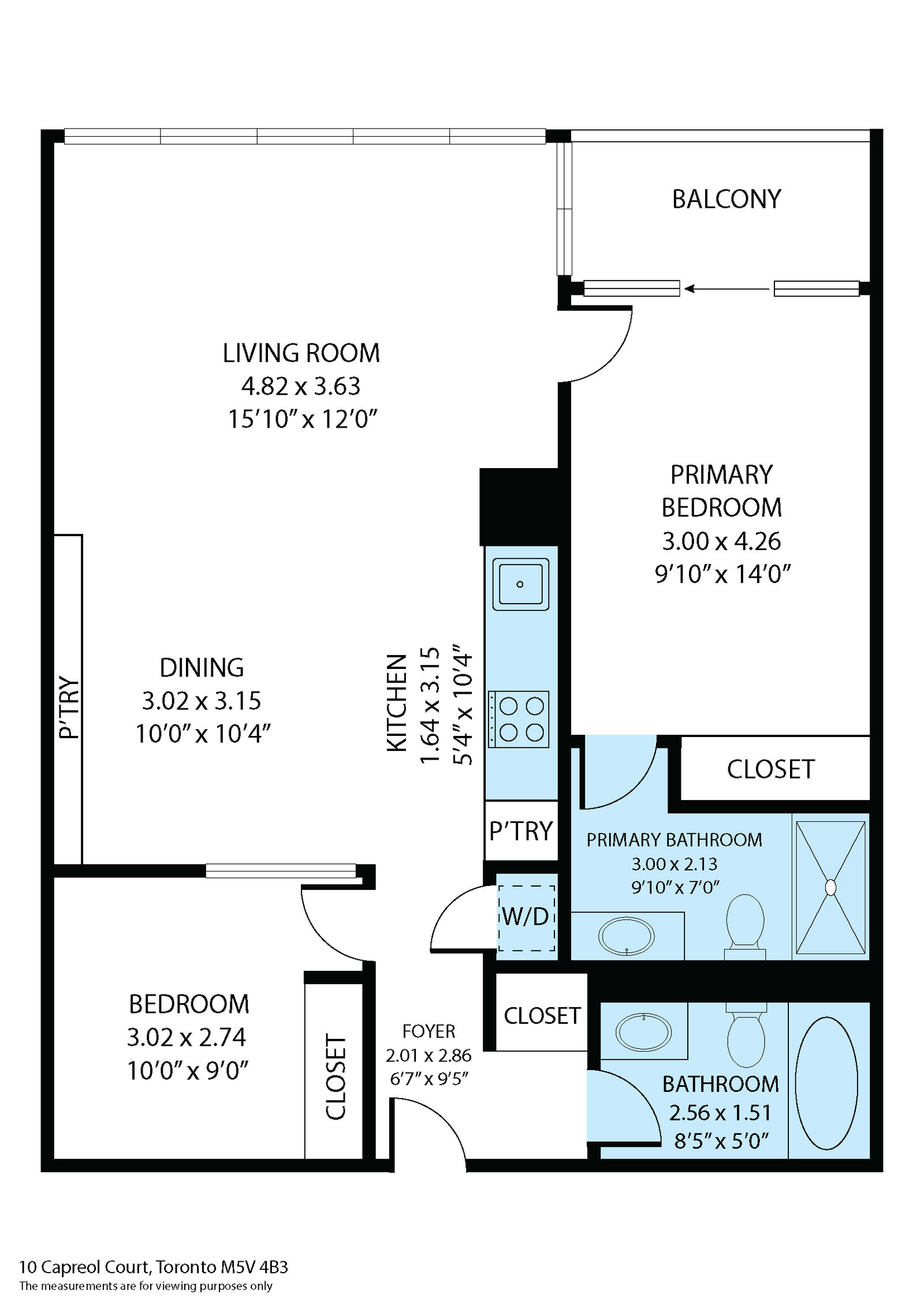 Welcome to Parade Condos in Cityplace! Incredible location in the heart of downtown where all the action is. This spacious two-bedroom, two full bathroom unit features a split bedroom layout, upgraded kitchen with built-in Miele appliances, loads of cabinetry for added storage and pantry space, modern finishes through-out, a balcony and prime parking spot included. Super convenient location within walking distance to St Andrew Station, Union Station, Billy Bishop airport, shopping, grocery stores, Stackt outdoor market, trendy King West, financial district, the waterfront and so much more. Not to mention close to some of the trendiest restaurants and bars the city has to offer. Perfect space for an end-user or investor. This unit is an unbelievable value and a turnkey investment opportunity. Great chance to own a downtown condo in a prime location. Simply move-in or rent out and enjoy!