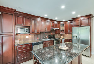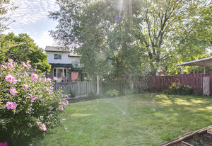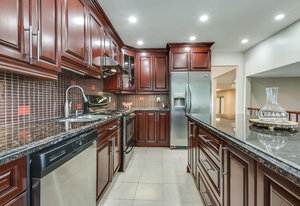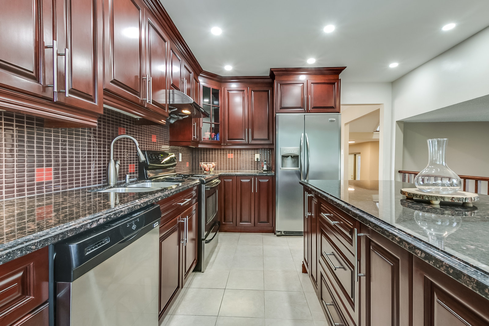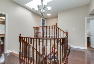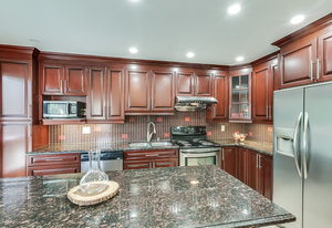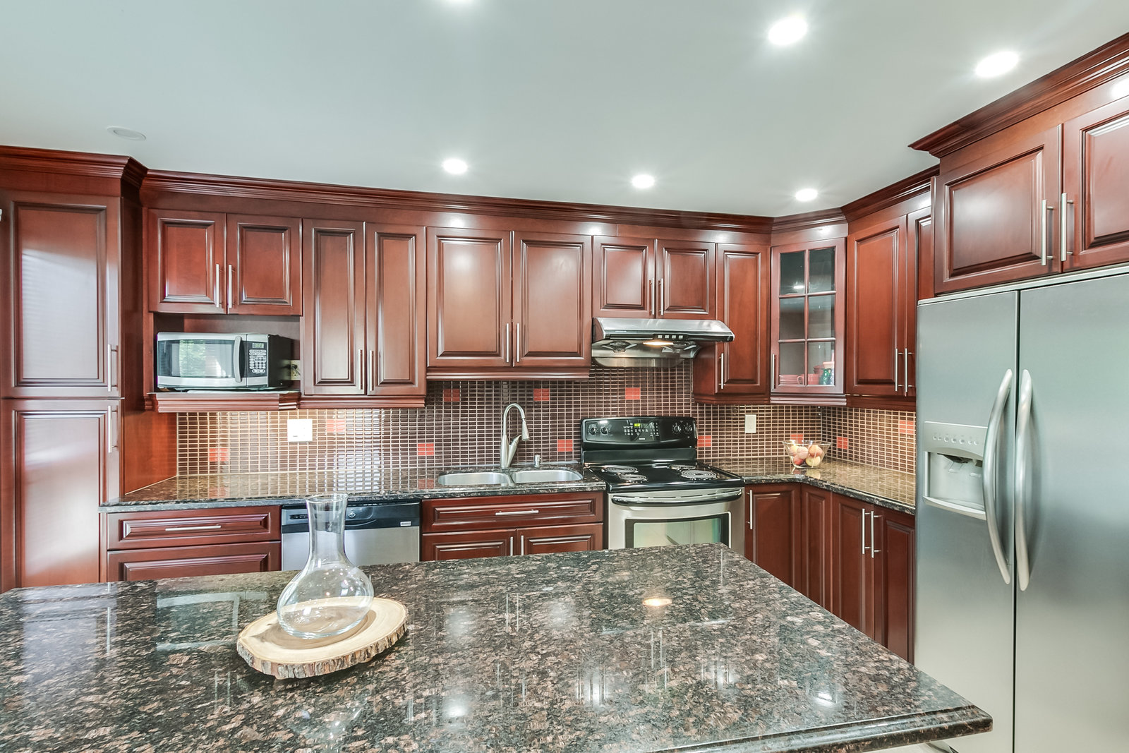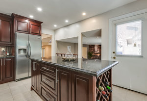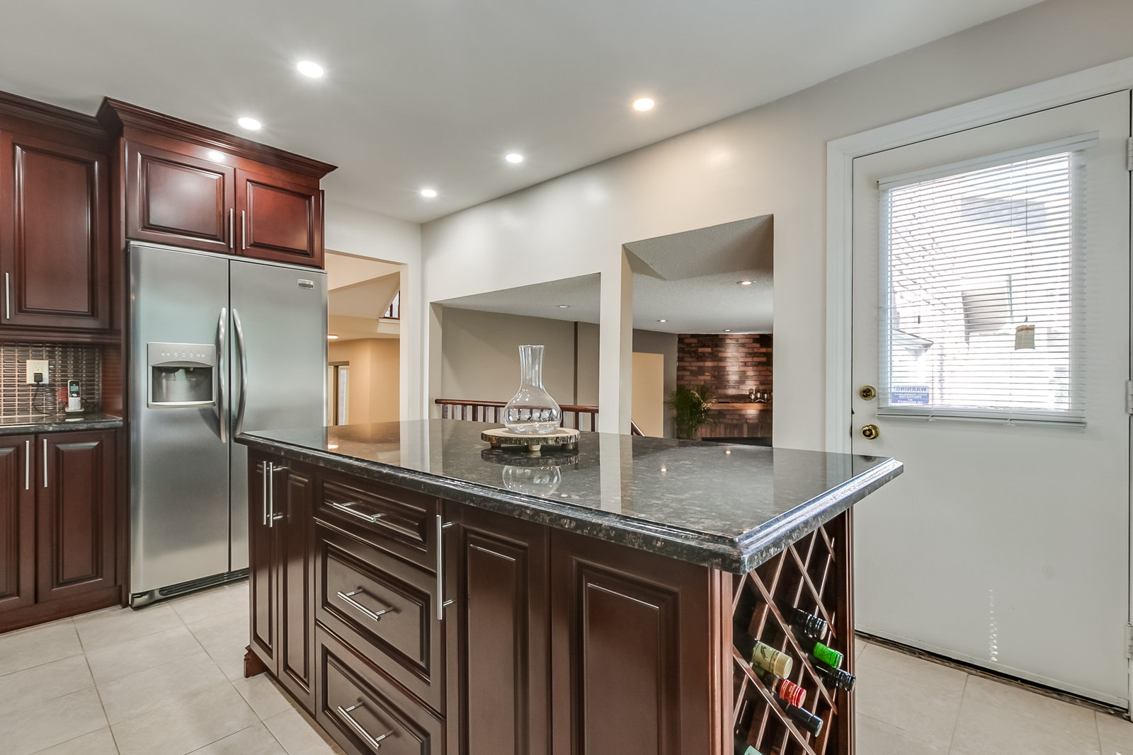 The upper level boasts four grand size bedrooms with the master containing an ensuite. Hardwood throughout the house. Oh, but the kitchen! An oversized island with Granite counter top and a wine bar plus, walks out to the backyard. Enjoy coffee while you take in the sights of a well manicured backyard.