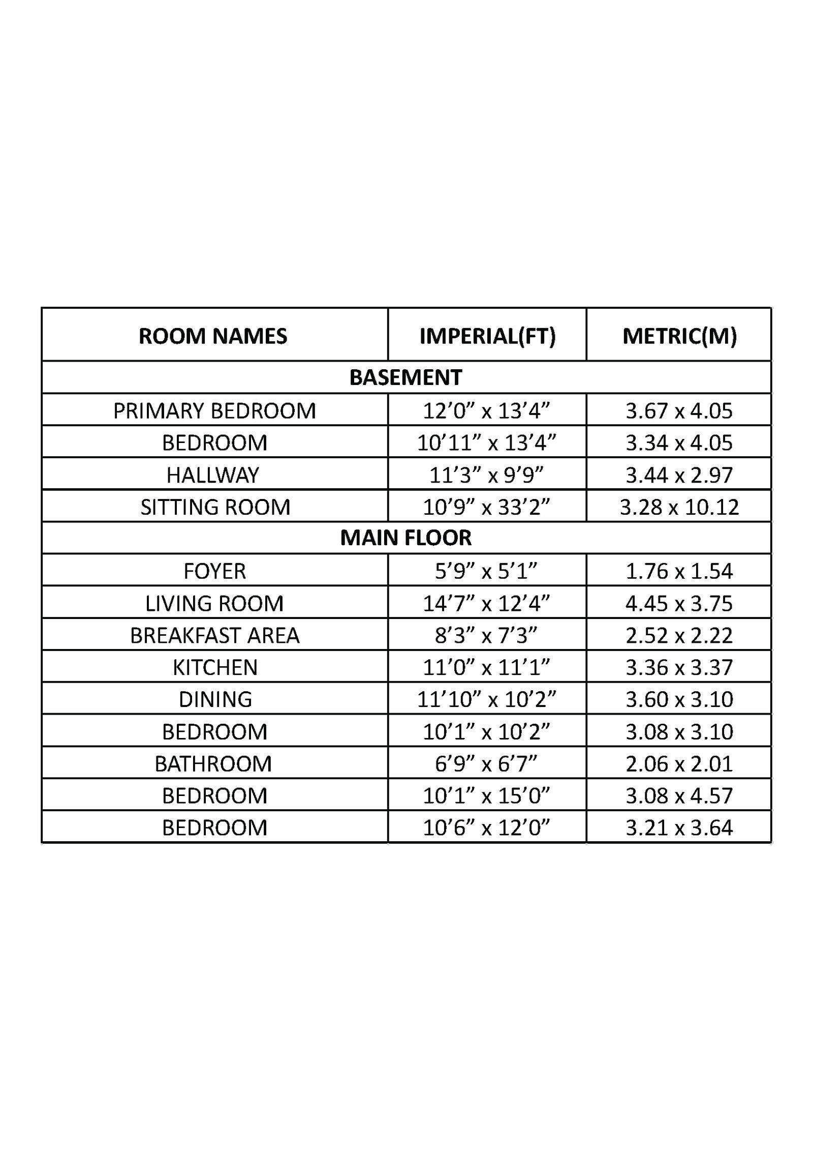 Room Measurements